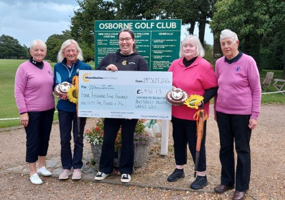 44 ladies played at Shanklin & Sandown Golf Club for the Butterfly Trophies in aid of the Mountbatten Hospice. A cheque was presented to Katie Mew, Head of Income Generation, for £4134.10p.